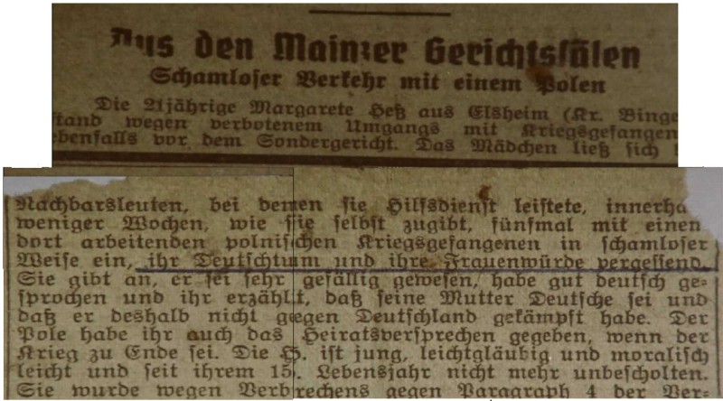Wegen eines intimen Verhältnisses zu der Elsheimerin Margarete Hess wurde der polnische Zwangsarbeiter Leon Szczepaniak im Mai 1942 hingerichtet. Margarete Hess wurde misshandelt und erhielt eine lange Gefängnisstrafe. 1975 bewirkte der katholische Pfarrer Ludwig Hellriegel die Aufstellung eines Gedenksteins. Ein besonderes Zeichen mit Folgen – bis heute.