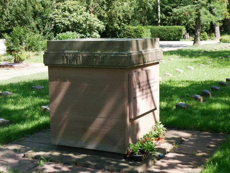 Auf dem Ludwigshafener Hauptfriedhof errichtete die Sowjetische Militärverbindungsmission – eine Armeebehörde, die Personal in die Besatzungszonen der Westmächte entsandte – 1950 ein Mahnmal für 168 Tote. Die heroische Inschrift sollte die Erinnerung an den sowjetischen Kampf gegen den deutschen Faschismus stärken. Allerdings befindet sich der Stein in der Mitte eines Gräberfelds mit insgesamt 362 Toten, die nicht nur aus der Sowjetunion, sondern auch aus Polen, Frankreich und Jugoslawien stammten. Ihre Namen sind auf bodennahen Tafeln angebracht. An einer Seite steht ein eigenes Mahnmal für beigesetzte polnische Kriegsgefangene aus einem nahen Lager in Mannheim-Käfertal.