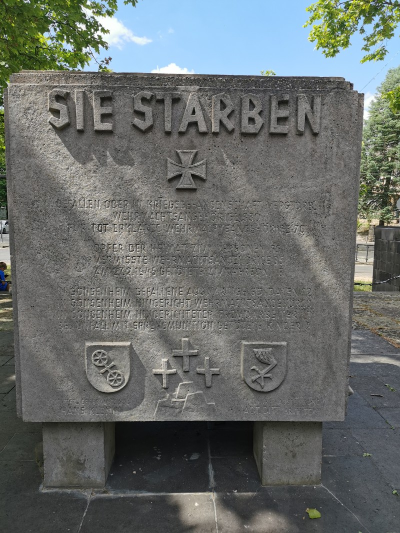 Sie starben in Gehorsam für unser Volk, 1939–1945Inschrift auf dem Gonsenheimer Mahnmal