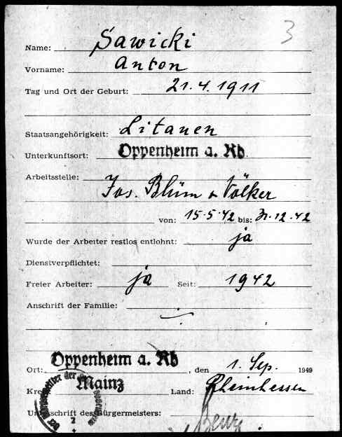 Der polnische Priester Antoni Sawicki (1911-2010) war als Theologiestudent nach dem deutschen Überfall auf Polen zunächst inhaftiert worden, dann kam er zur Zwangsarbeit nach Rheinhessen – erst nach Oppenheim und dann nach Schwabsburg (heute ein Ortsteil von Nierstein). Aus dieser Zeit hinterließ er eine besonders eindringliche Quelle: ein Tagebuch in dem er von seinem Schicksal Zeugnis ablegte.