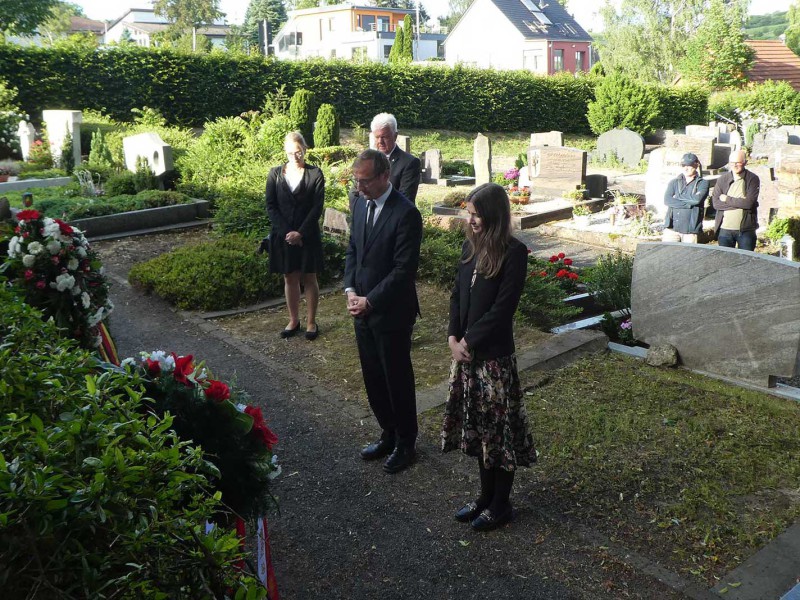 30 Jahre später engagierte sich der katholische Pfarrer Ludwig Hellriegel (1932–2011) für die Aufarbeitung dieses NS-Verbrechens und unternahm umfangreiche Recherchen. Der von ihm als Zeichen der Versöhnung angeregte Gedenkstein wurde im Ort kontrovers diskutiert und rief Widerstand hervor. 1975 wurde er von politischen Vertreter:innen aus Deutschland und Polen feierlich eingeweiht. Eine anschließende Fahrt katholischer Pfadfinder nach Polen legte den Grundstein für deutsch-polnische Freundschaften in den kommenden Jahrzehnten.